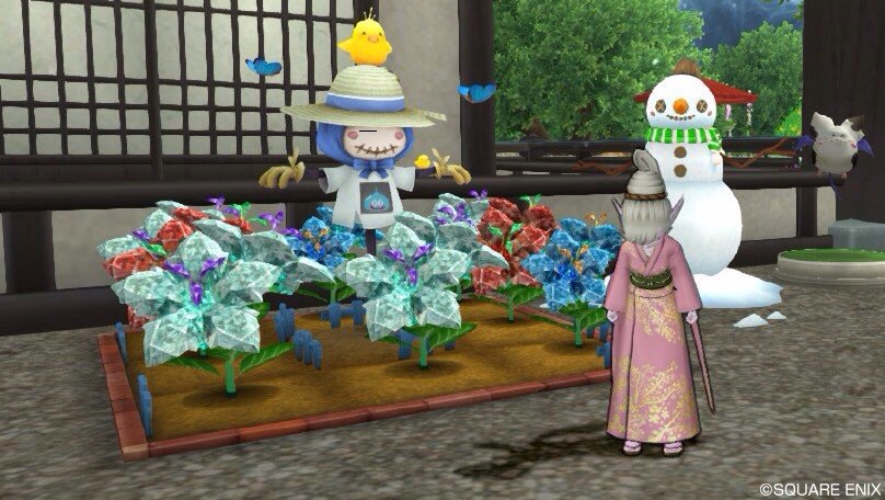 偶然が織りなす虹布 こんばんは、ユラです。今日は日中も快晴、ちょっと外気も暖かでした。エースキラーの淹れてくれたお茶、美味しいなぁ~ふぅ。今日もお疲れ様~ みなさん、超おたから花は育ててますか?3日という短期間で咲いてしまうのが便利といえば便利なのですが、私はいつも一週間前後かかる種を植えてるため芽が出る → つぼみをつける → 花が咲くのカラー花とは違うショートサイクルにはじめついていけず、レアを咲かすのにひと苦労していましたが、情報を集めたり水とう〇ちょこまめにやったり、レア水ガツガツ投入して、がんばってみました。でも何よりありがたかったのは、ご近所さん、フレンドさん、来店いただいたお客様からのお水撒きです。どうやらそれがレア度アップにつながっているよう。本当にありがとうございます! 念願のダイヤがたくさん咲きましたぁ~☆栽培の参考にさせてもらったブログがあるのですが、今閉館していてリンク貼れないので、そちらで習ったこと+自分の栽培状況を簡単にまとめますと①レア水を一生懸命まく(つぼみアップ1、レア3)②栽培履歴に残る12時間を空けて、5キャラでできるだけ水&肥料やり 自分で面倒くさくならないよう、今回は畑主キャラ以外は1マス水やりに徹しましたvちなみにお世話回数の恩恵が多かった花屋の畑のほうが、自宅の畑よりレア率が高かったです。でもそういうことに限らず、お水もらえるのはうれしい^^私もできるだけお返しできたらなぁ~、と思ってます。(至らなかったらスミマセン><)今後もお世話の記録と成果を、まとめられたらご報告しようかな。そんな感じでいつも以上にお水やり等サブで行動していると、そちらでも偶然楽しいことに出くわしたり。 マガちゃんともんちぃさんが、花屋に遊びに来てくれたところに遭遇☆聞いたら何でも、うちの空飛ぶ植木で写真を撮りに来たんだそうで… これ。(マガチン拝借しました)ねぇねぇもんちぃさん、本当にこれに憧れたの?どうしてもやりたかったんですね!その様子がもんちぃさんのブログに載ってました。エスキラになると、どうもかわいい子をくどきたくなるどうしようこの衝動。大丈夫かな私?あと討伐購入にメギいたりするのですが、ホームグラウンド38鯖にかわいい子が立ちすくんでいたので、やっぱりナンパしちゃいました…! もみじさん♪プクバージョンお初です☆ひとしきりしゃべり終わった後、恥を忍びつつ大都会の中心で モフモフしてもらっていいですか?!と愛を叫びました。快諾! ほわふぅえあひゃはぁぁぁーーーーーーーーーー*・゜゚・*:.。..。.:*・'(*゚▽゚*)'・*:.。. .。.:*・゜゚・*もみちゃん、公衆の面前でへんなこと言ってごめんね!写真家宝にします!あと週末は、UFOイベ以来のtwitter友達クジャさんの呼びかけで、真災厄にチーム員ごと便乗させてもらうことに。 ここを通りたければ我々の屍を越えて行けー!!(後続を待ってるだけ) おかげさまで真災厄を未クリアだったチーム員たちも、めでたく無事攻略!お友達も増えたー♪( ´▽`) 夜には、待ち焦がれたキラーマジンガにも初挑戦!私の感じた攻略ポイントは、主観になってしまいますが以下の点でしょうか。飲み過ぎ注意これに限ります。酒豪のみなさんもお気をつけて!飲んだくれへっぽこ僧侶がみんなの貴重なコインを浪費させた気がしましたが気のせいだといいんだけど(にっこり) (みんなの)苦労の甲斐あって出ました!アクセルギア。装着!スチャッ、ギュイィィーーーーン! ←イメージ音なんか僧侶につけとくといいことがあるみたいなんで、とりあえず着けてます。あーそうだ討伐買ってなかったよいっけね!っと先ほどの真災厄時、クジャさんご指定の25鯖のメギを通りすがったときに、ギル丼の高額討伐を売ってるのがチラっとみえたことを思いだし深夜に買うだけ買っておきます。 と、メギに行ったら、その日たまたまtwitterでお話していたジルさんにも遭遇!ちょっと立ち話をしていたら、ドレアがお好きなジルさんはお花屋さんをご活用されてて、なんとうちのお店にも足を運んでくださり、以前花屋の石も登録しいらしたとのこと…!Σ(・□・;)うおおおおおーーなんて嬉しいー!!(≧∇≦)すぐさまお友達になってもらいましたっw ちょうどドレアしたてとの装備。純白を引き立てるグリーンのグラデーションが美人をより一層際立たせてますね…!ナイスドレスアップ☆流麗なジルさんもこのことをブログに載せてくださってるのですが、そちらの最初の写真をご覧になるとわかるのですが、ユラはこの日ウッカリぐるぐるメガネ盗賊というちょっと自分でも説明しかねる家着でオシャレの都に出向いてしまいました!ひえぇぇ~///ジルさん、討伐売主のティファさん、いろいろありがとうー!^^ブログといえば最近ズッカちゃんもうちの花屋を特集に出してくれてました。何なに?どうしたの??ワタシ、モテ期なのかな?!否twitterのやりすぎです…!!!そんな楽しいやりとりやお得情報がいっぱいなユラのt