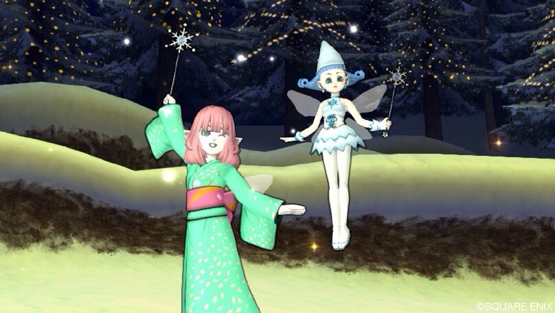 サブたちの日常。 こんにちはーゴクゴク…… はぁぁーーーおいし♪寒い季節はあったかい食べ物や飲み物が、シアワセですね(*^_^*) お鍋にシチューにスープに煮込み。簡単だしあったまるし、冬だからよく作りがち。洗い物もカンタンだから、時短でドラクエいっぱいできるしね~!wせわしない師走の隙間にちょっと時間のよゆーができたのでサブたちも起こして、のんびり畑の水やりツアーをしました^^ シャーッ 大きくなあれ~☆(訳:レアいっぱい咲いてー)w 完全にきしくんが畑を踏み荒らしてるの図。(笑) コレ、簡単に撮れてるようですが、実はジョーロを写すのが至難の業!(アレ私だけかな?!)まず撮りたい構図で構えまして、コマンド「お水をあげますか」→「はい」…を押した瞬間にサッ!と写真開いてすぐさまパシャ!っと撮る!!…が、ちょっとでも遅れるとジョーロが消えちゃうんだよねぇ。過去に何度も試してきて(何やってるんだ)ジョーロ写らない仕様なのかと思ってましたが、いやいやがんばれば撮れるはず!と信じて何度もやってるうちに撮れるようになりました☆という、くだらない遊びを交えながら、水やり徘徊&フレさん家にスラチャカキコミ。こういうことしてる時がほんとにたのしいですwwウンウン、いい写真撮れたなぁと、エスちゃんの写真整理してたら この前マガちゃんたちと遊んだ写真、こっちにあった。そーだそうだ、この時半分はエスちゃんで遊んだんだったよ~。(自動撮影)なんか「お菓子に靴下を食べなよ」みたいなへんな話してたら、「聖天の靴下」が全然でなくなるという靴下の呪いの会。右2足とかって言ってたけど、そういや靴下に左右ってあんまりないよね。5本指ソックスかな?クリスマスなのに…w かっこよく爽快な自動撮影があったことをご報告します!エスちゃん時代はオノ不遇だったけど、オノレンジャーと僧侶楽しくて2本立てでがんばってました^w^エスキラは石も何個かちゃんと持ってる子なので イベントの打ち合わせに行ったり 人ん家でくつろいだり(水やり中) 討伐販売の邪魔応援したり、いろいろ写真が残ってました。(このあともアキ販売員の後ろで無言で踊って貢献。という名の邪魔応援。) 花屋の店員も、スノーマジック☆ゲット!和服 meets クリスマス。クリスマスイベントも後半始まりましたね!まだやってませんが、どんなかなぁ~楽しみ☆最近週中にちょいと一杯ひっかけて体を温めたら寝ちゃうんだよねぇぇー今日はやろう!wサブでまったりもたまには楽し♪↓クリック応援、ありがとう☆↓